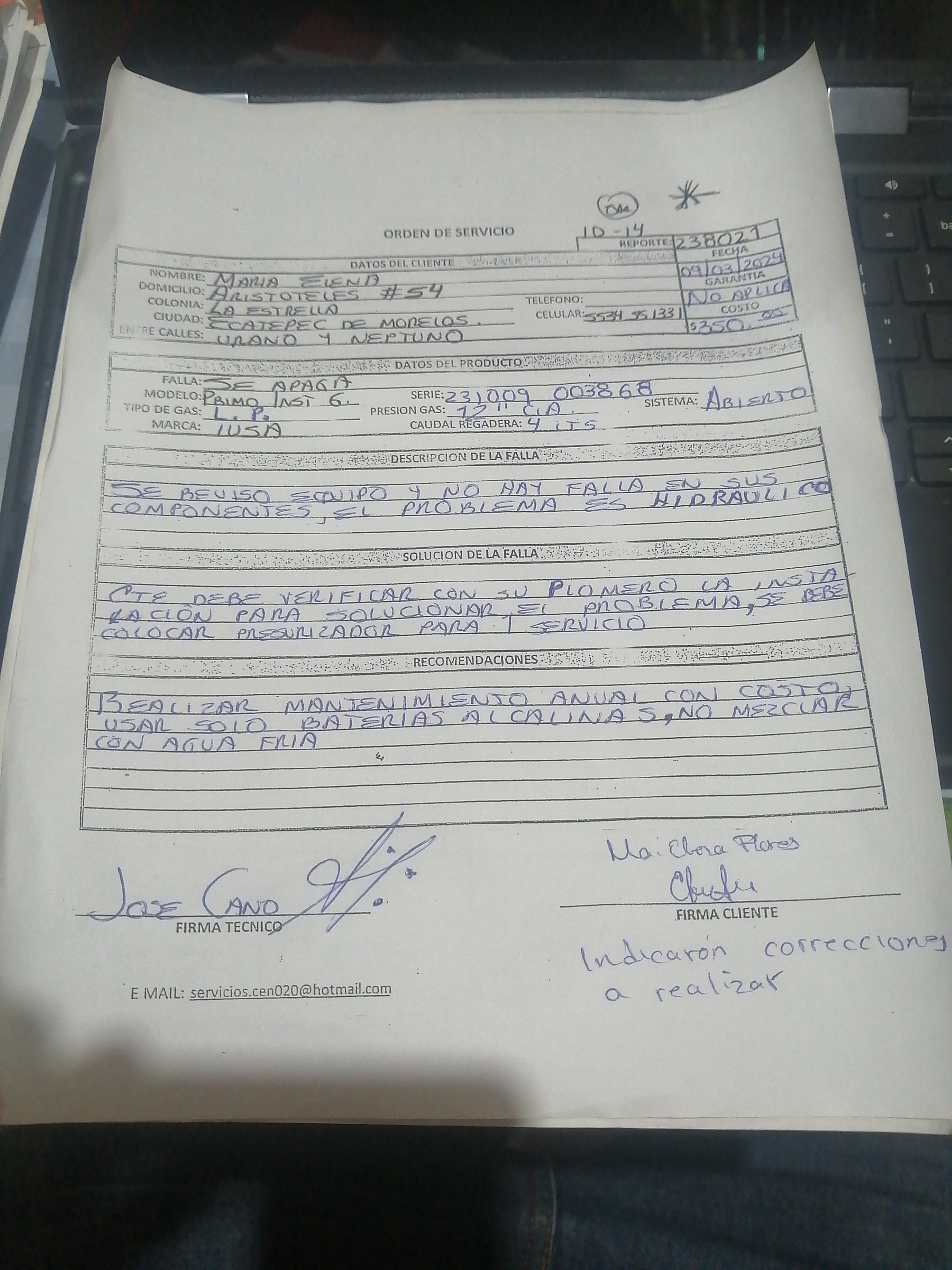 | Técnico | Jose Cano Sanchez | Fecha Asistencia | 2024-03-09 20:38:00 | ||||||||||||||||