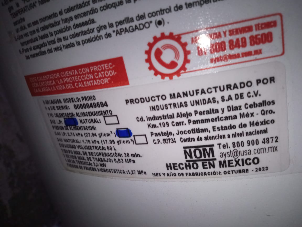 | Material | CALENTADOR DEPOSITO PRIMO 60L. LP | Tipo Producto | |