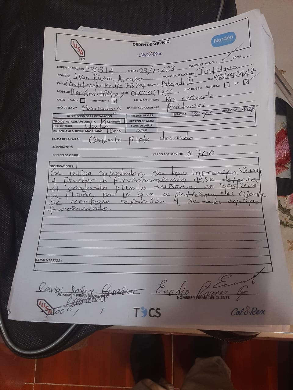 | Refacciones Utilizadas | NO | Tipo de Refacción | N/A | ||||||||||||||||