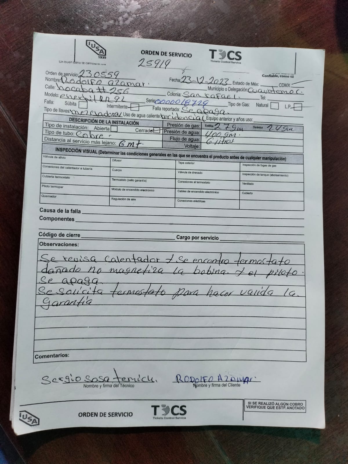 | Refacciones Utilizadas | NO | Tipo de Refacción | N/A | ||||||||||||||||