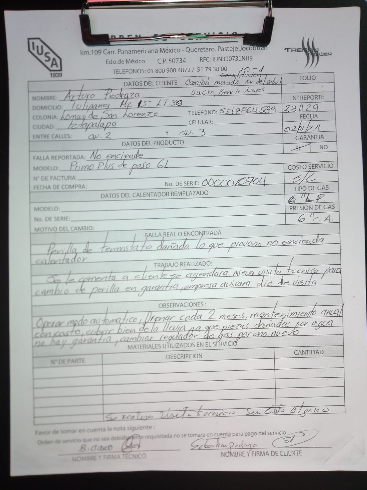 | Orden de Servicio | TT231129 | Orden Interna Refacción | 498570 | ||||||||||||||||