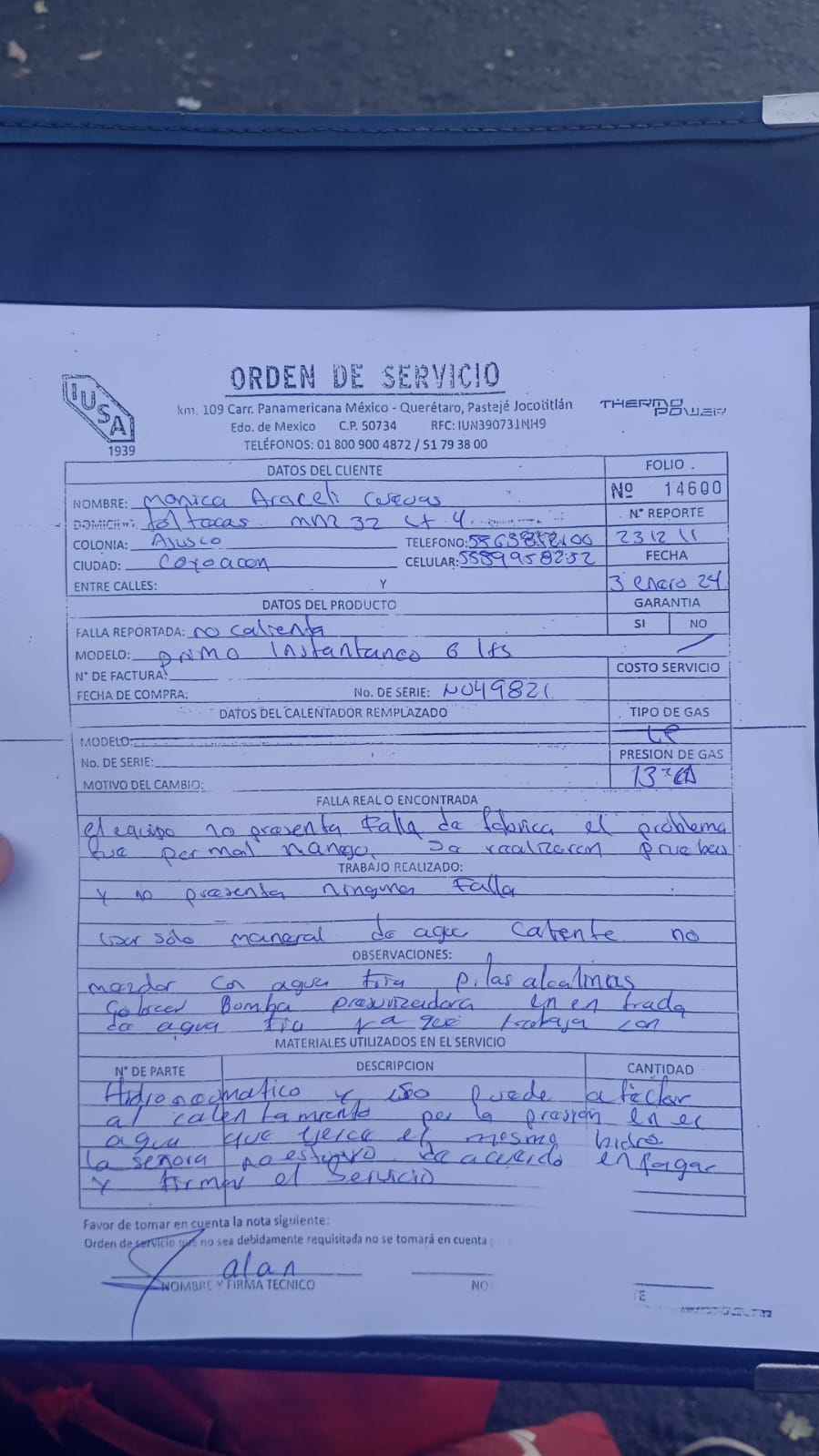 | Se comunica usuario reportando un CALENTADOR INSTANTANEO PRIMO 6L LP ya que indica que enciende pero no calienta utiliza gas lp |