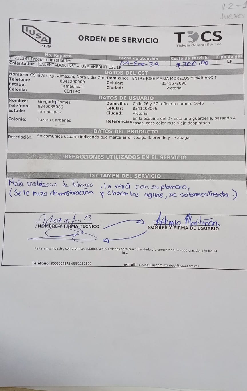 | Técnico | Zoi Abrego | Fecha Asistencia | 2024-01-04 17:00:00 | ||||||||||||||||