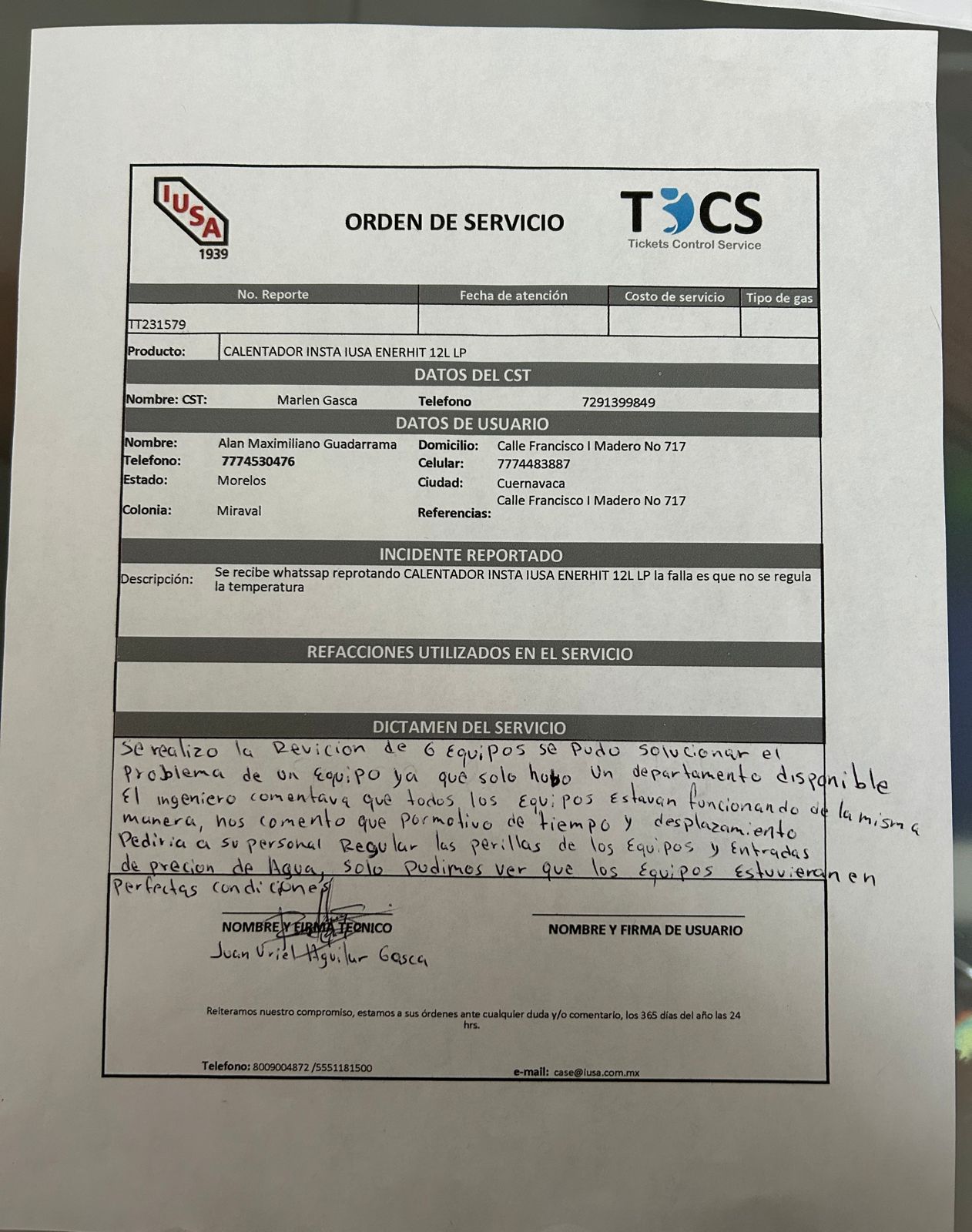 | Se recibe whatssap reprotando CALENTADOR INSTA IUSA ENERHIT 12L LP la falla es que no se regula la temperatura |