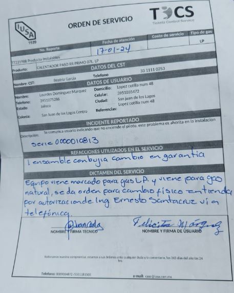 | Técnico | Beatriz Garcia | Fecha Asistencia | 2024-01-19 16:28:00 | ||||||||||||||||