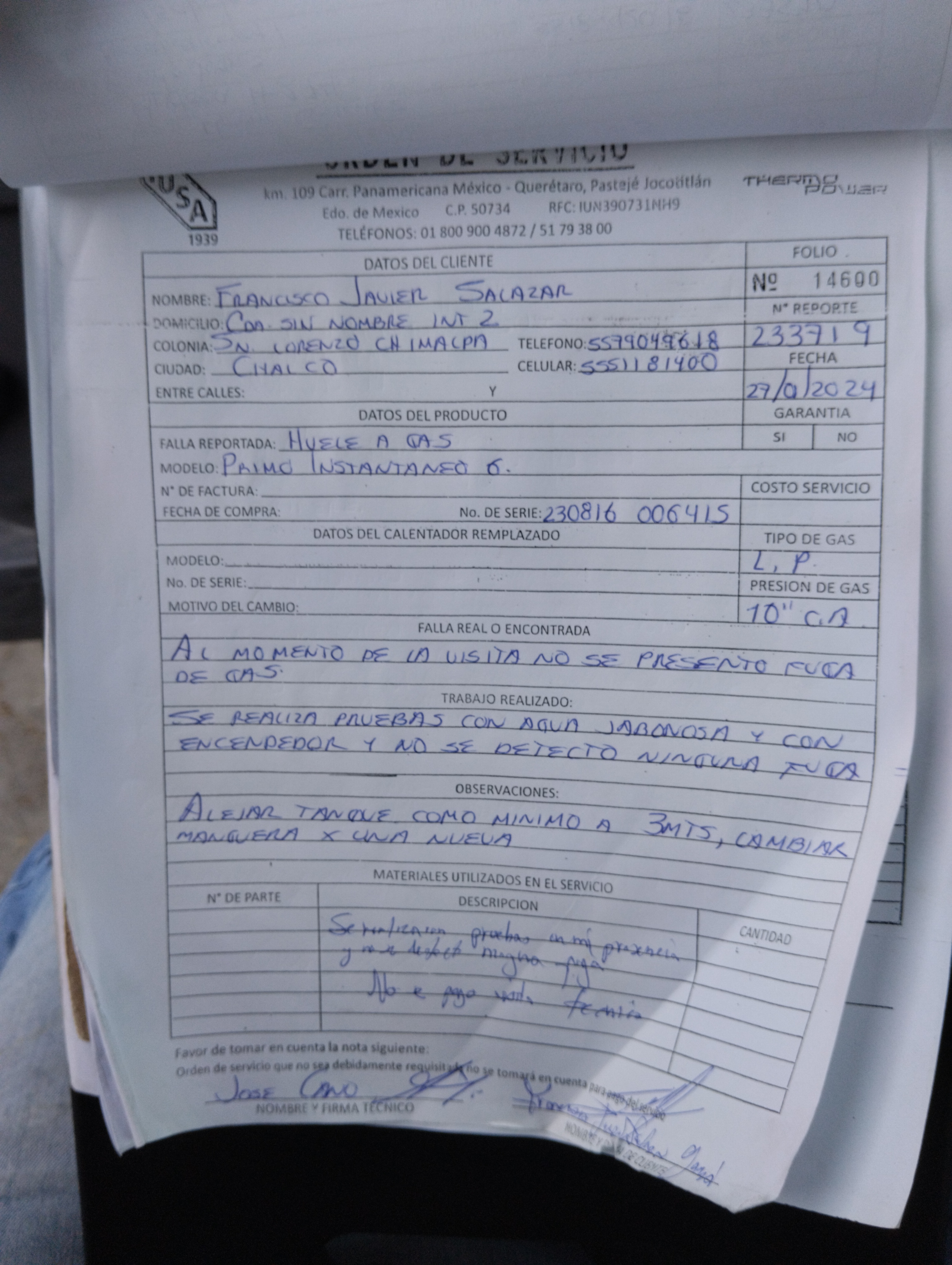 | Técnico | Jose Cano Sanchez | Fecha Asistencia | 2024-01-26 18:20:00 | ||||||||||||||||