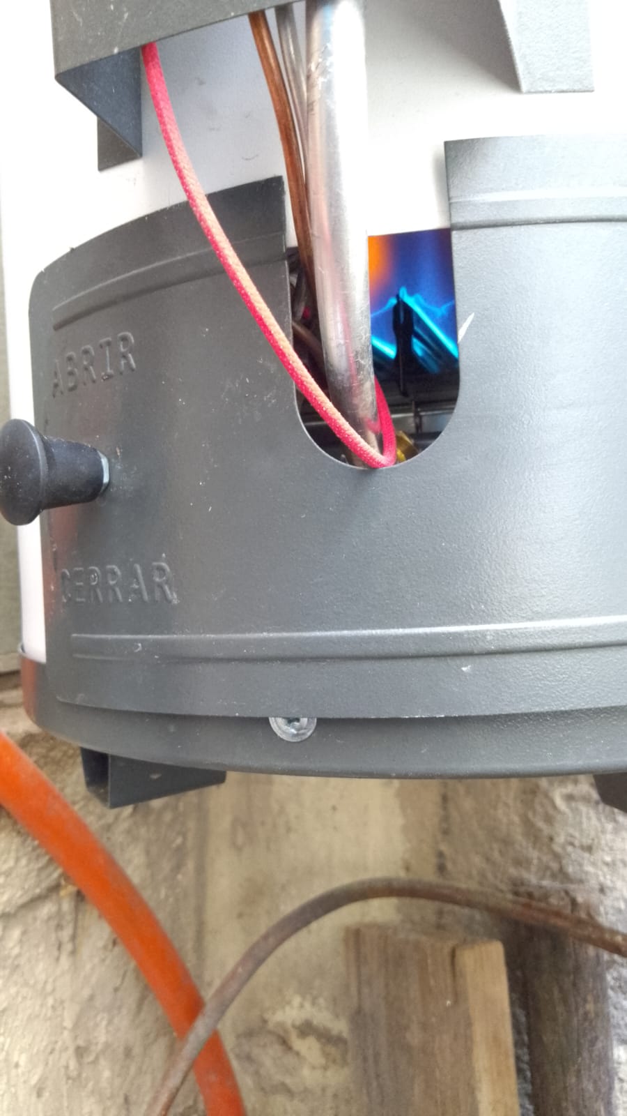 | Se comunica usuario reportando que el botón de su equipo ya que se salio, utiliza gas LP, se suministra de tinaco, cuenta con base el tinaco.