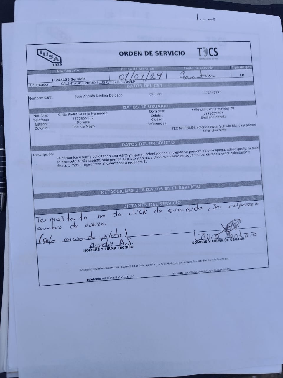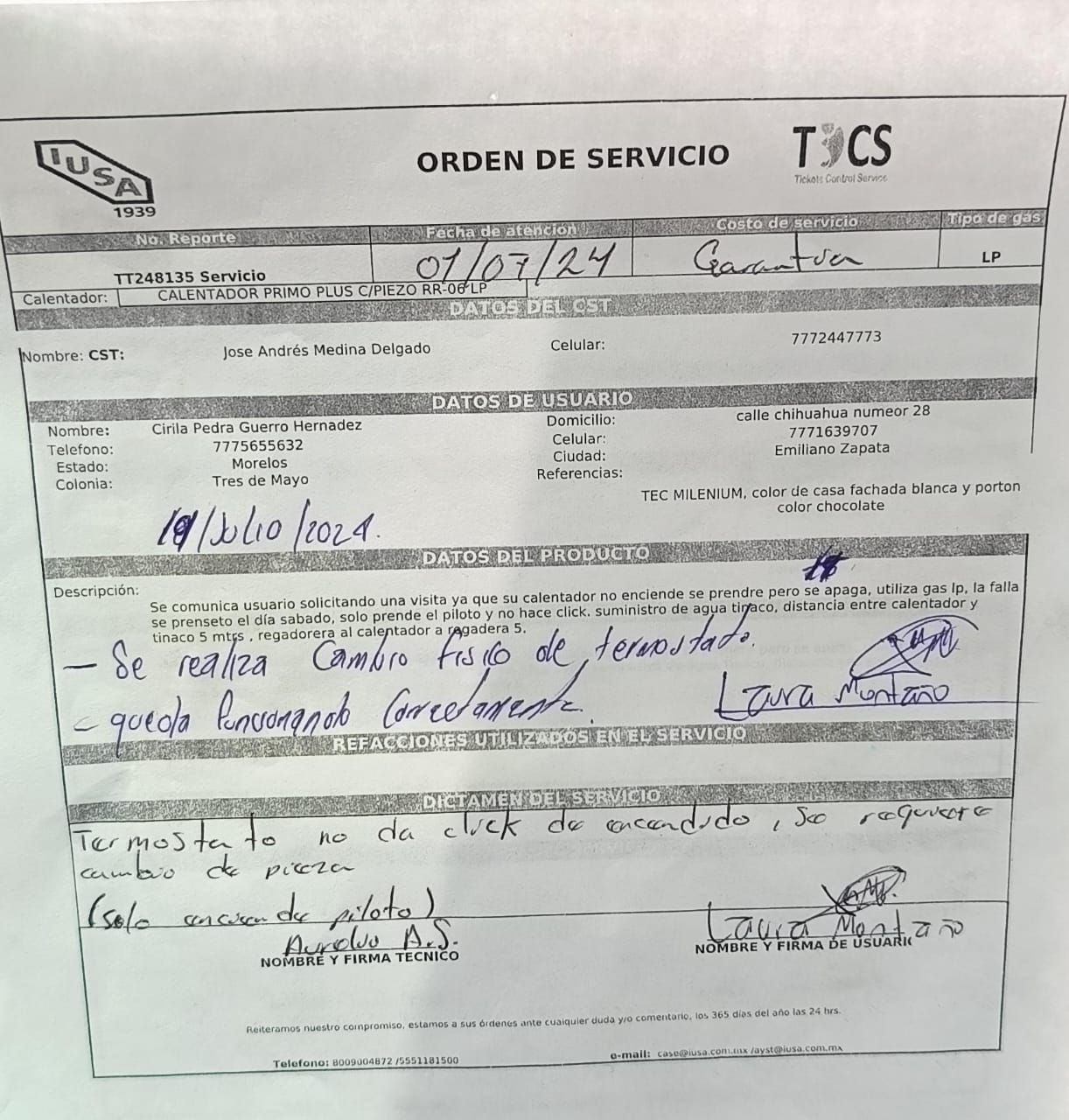 | Técnico | Jose Andres Medina Delgado | Fecha Asistencia | 2024-07-19 15:30:00 | ||||||||||||||||