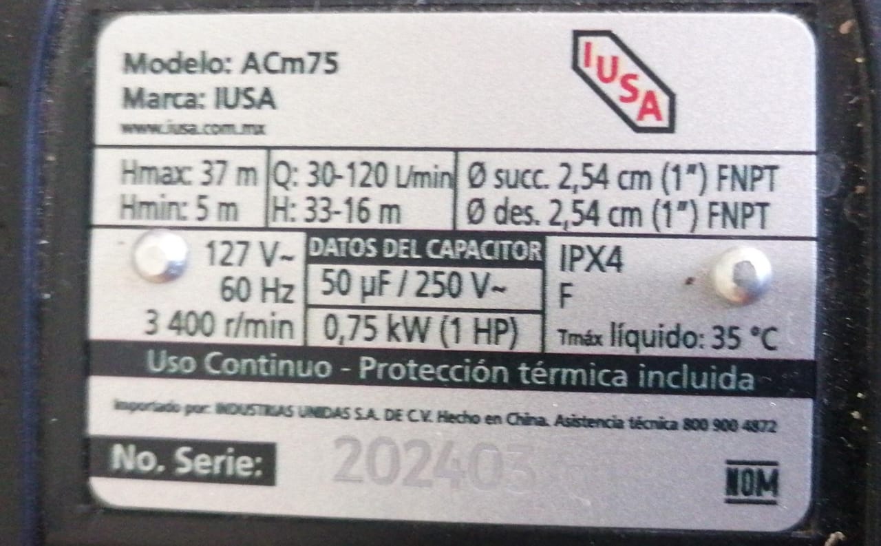 | Material | BOMBA ELEC. CENTRIFUGA PARA AGUA 1 HP | Tipo Producto | |