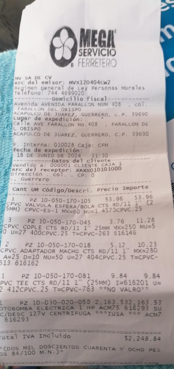 | Fecha de Compra | 2024-06-18 | Lugar de Compra | megasevicoserivio ferretero |