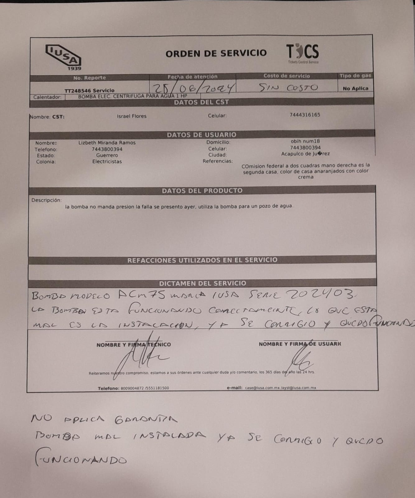 | Técnico | Israel Flores | Fecha Asistencia | 2024-06-29 14:50:00 | ||||||||||||||||