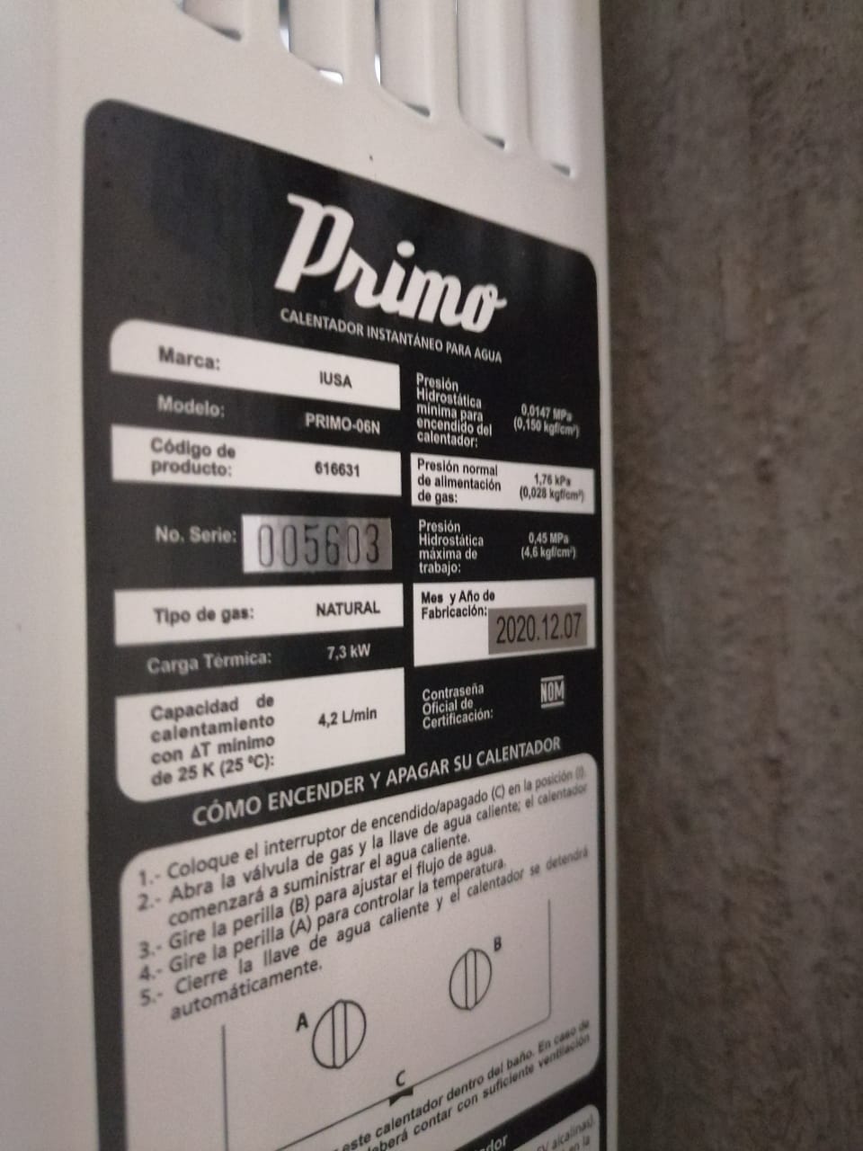 | Material | CALENTADOR INSTANTANEO PRIMO 6L GN | Tipo Producto | |