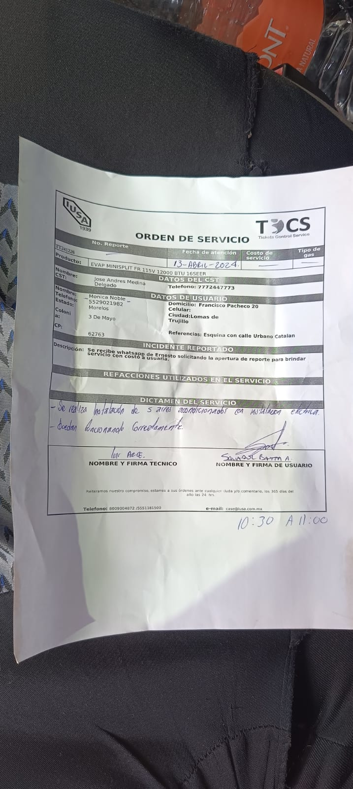 | Técnico | Jose Andres Medina Delgado | Fecha Asistencia | 2024-04-13 14:56:00 | ||||||||||||||||