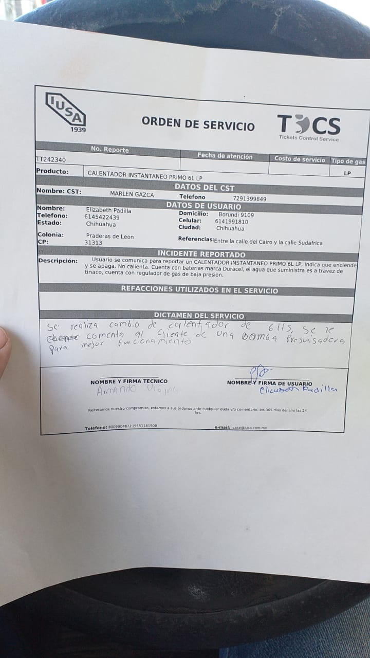 | Orden Interna | 56017792 | Falla Real | Calentador enciende pero se apaga | ||||||||||||||||