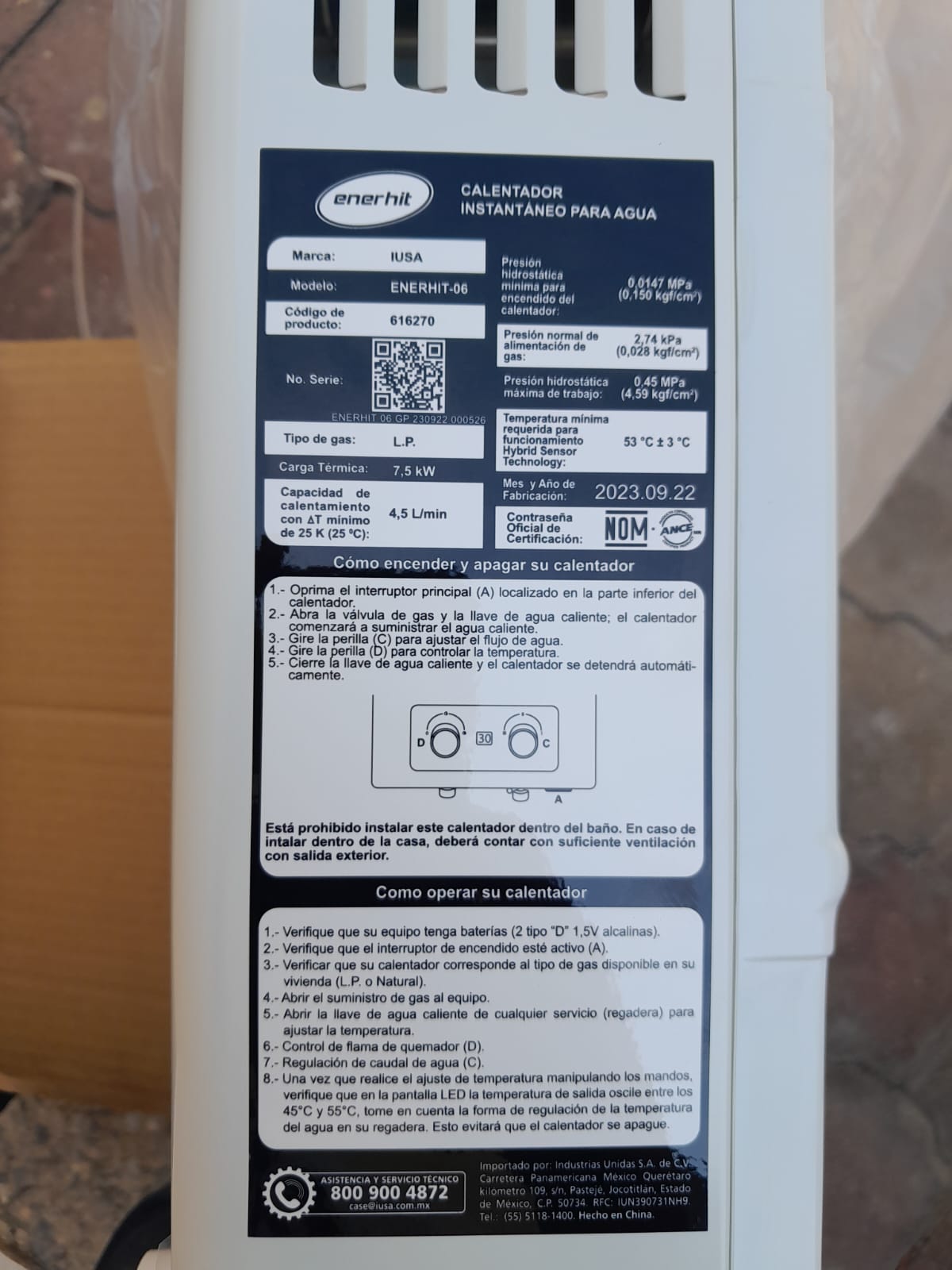 | Material | CALENTADOR INSTA IUSA ENERHIT 06L LP | Tipo Producto | |