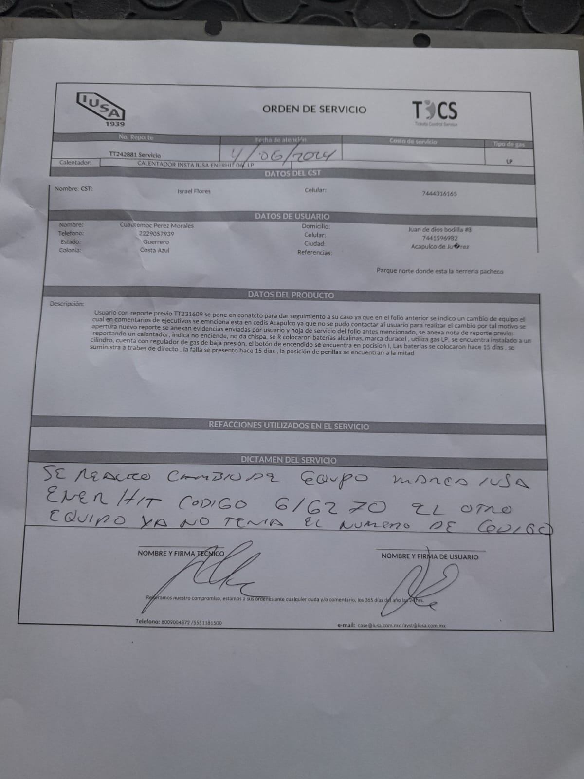| Usuario con reporte previo TT231609 se pone en conatcto para dar seguimiento a su caso ya que en el folio anterior se indico un cambio de equipo el cual en comentarios de ejecutivos se emnciona esta en cedis Acapulco ya que no se pudo contactar al usuario para realizar el cambio por tal motivo se apertura nuevo reporte se anexan evidencias enviadas por usuario y hoja de servicio del folio antes mencionado, se anexa nota de reporte previo: