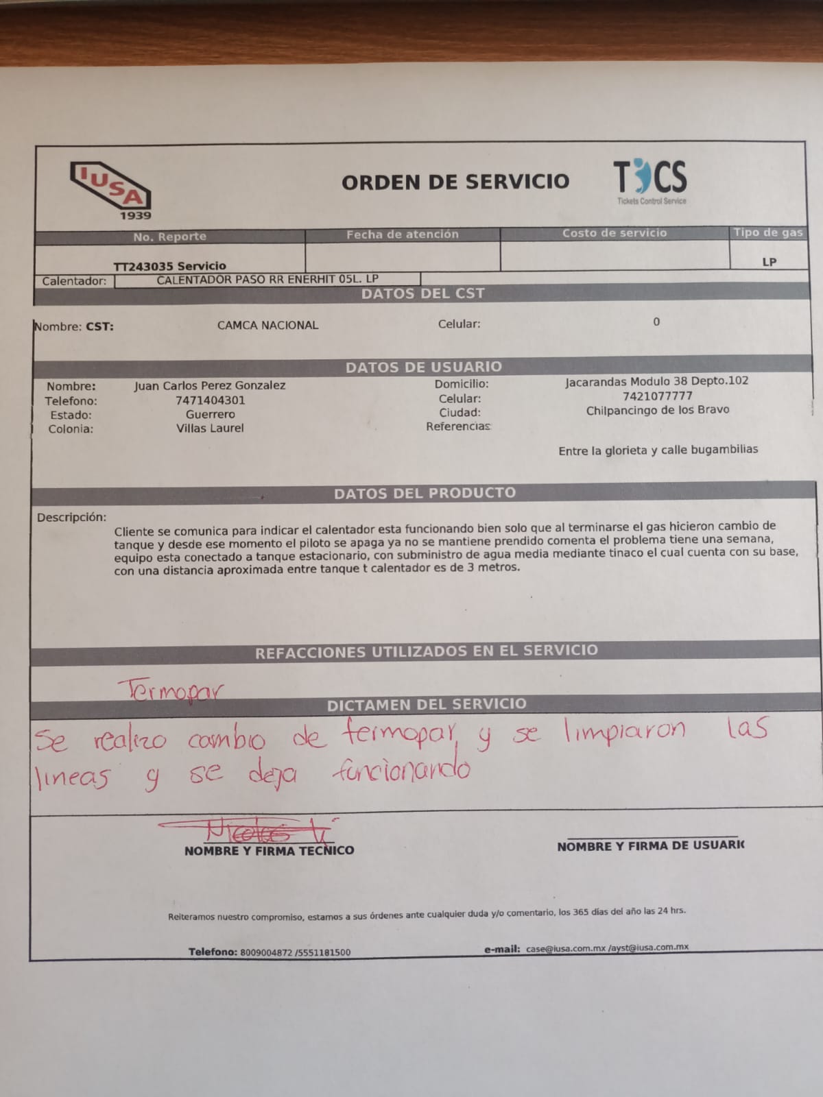 | Orden Interna | 58014120 | Falla Real | Calentador enciende pero se apaga | ||||||||||||||||