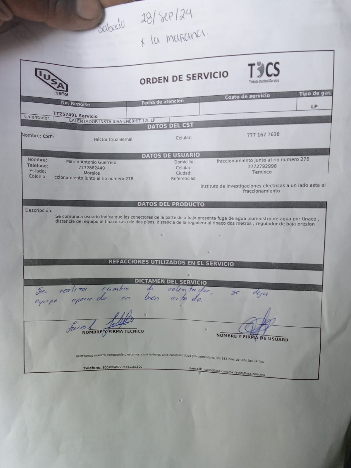 | Técnico | Jose Andres Medina Delgado | Fecha Asistencia | 2024-09-28 11:50:00 | ||||||||||||||||