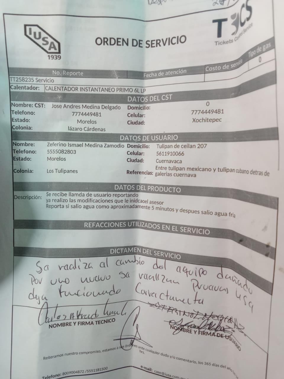 | Refacciones Utilizadas | NO | Tipo de Refacción | N/A | ||||||||||||||||