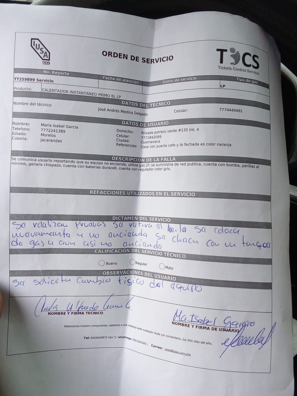 | Orden Interna | 56019235 | Falla Real | Calentandor no enciende | ||||||||||||||||