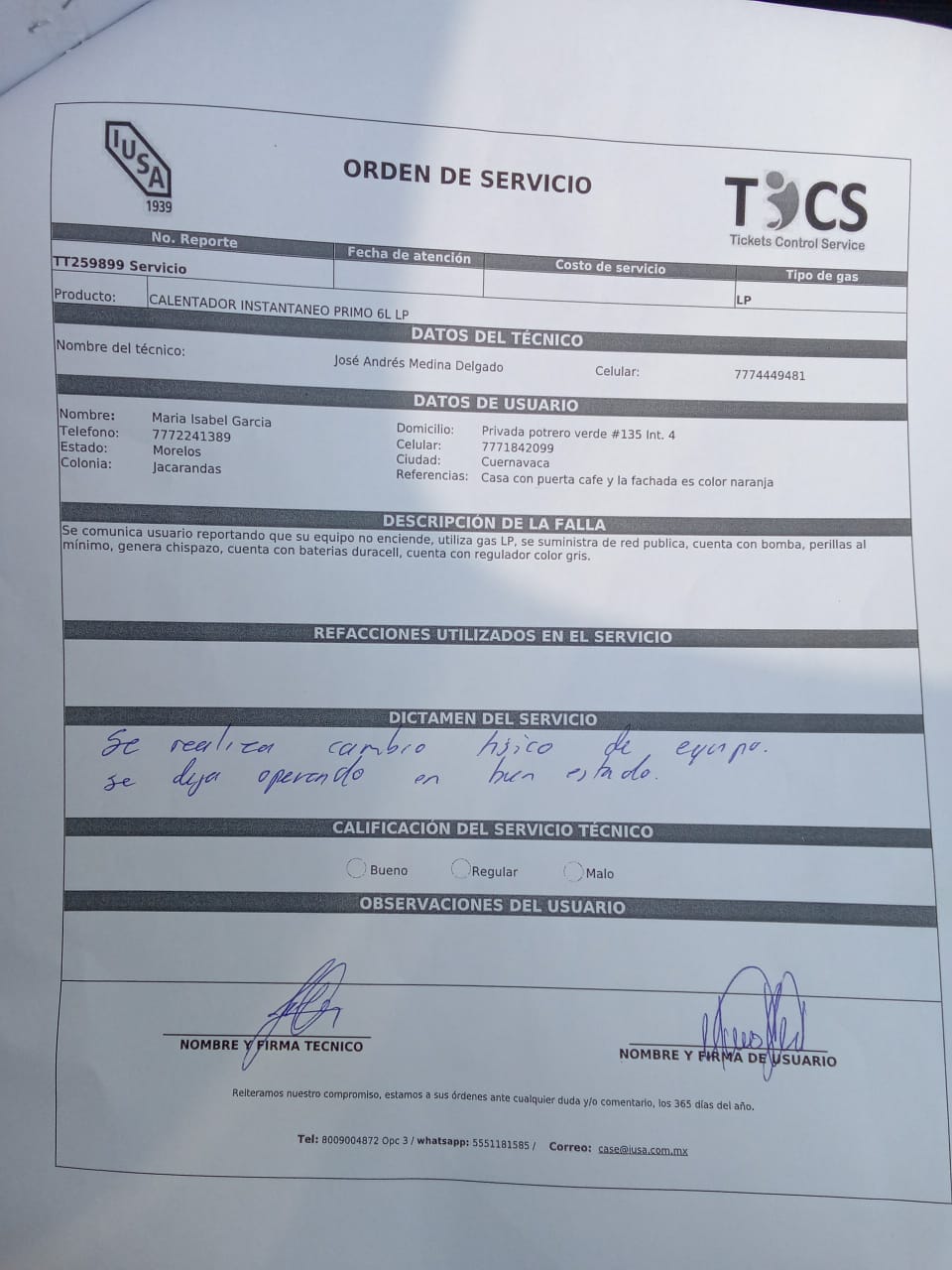 | Refacciones Utilizadas | NO | Tipo de Refacción | N/A | ||||||||||||||||